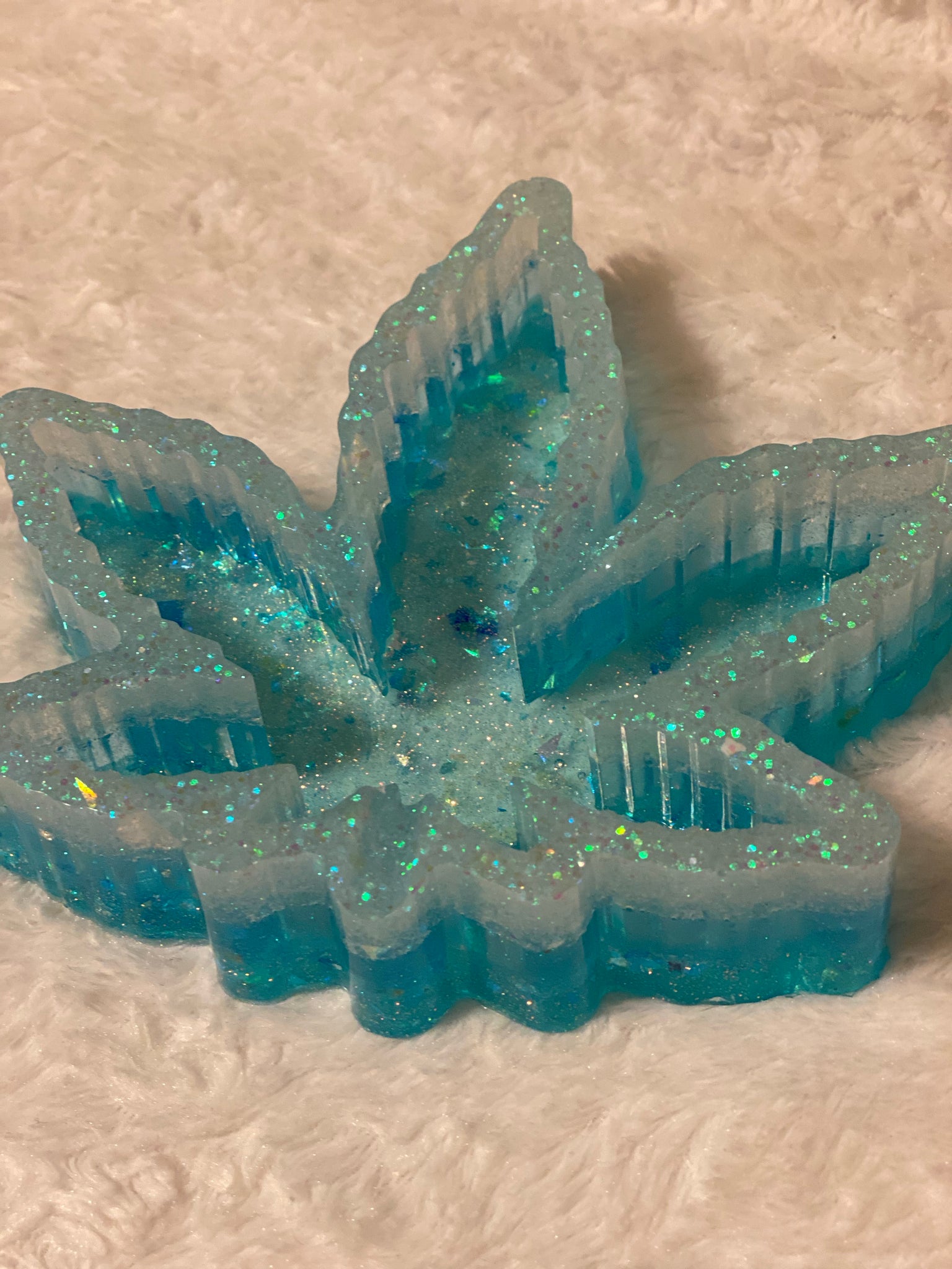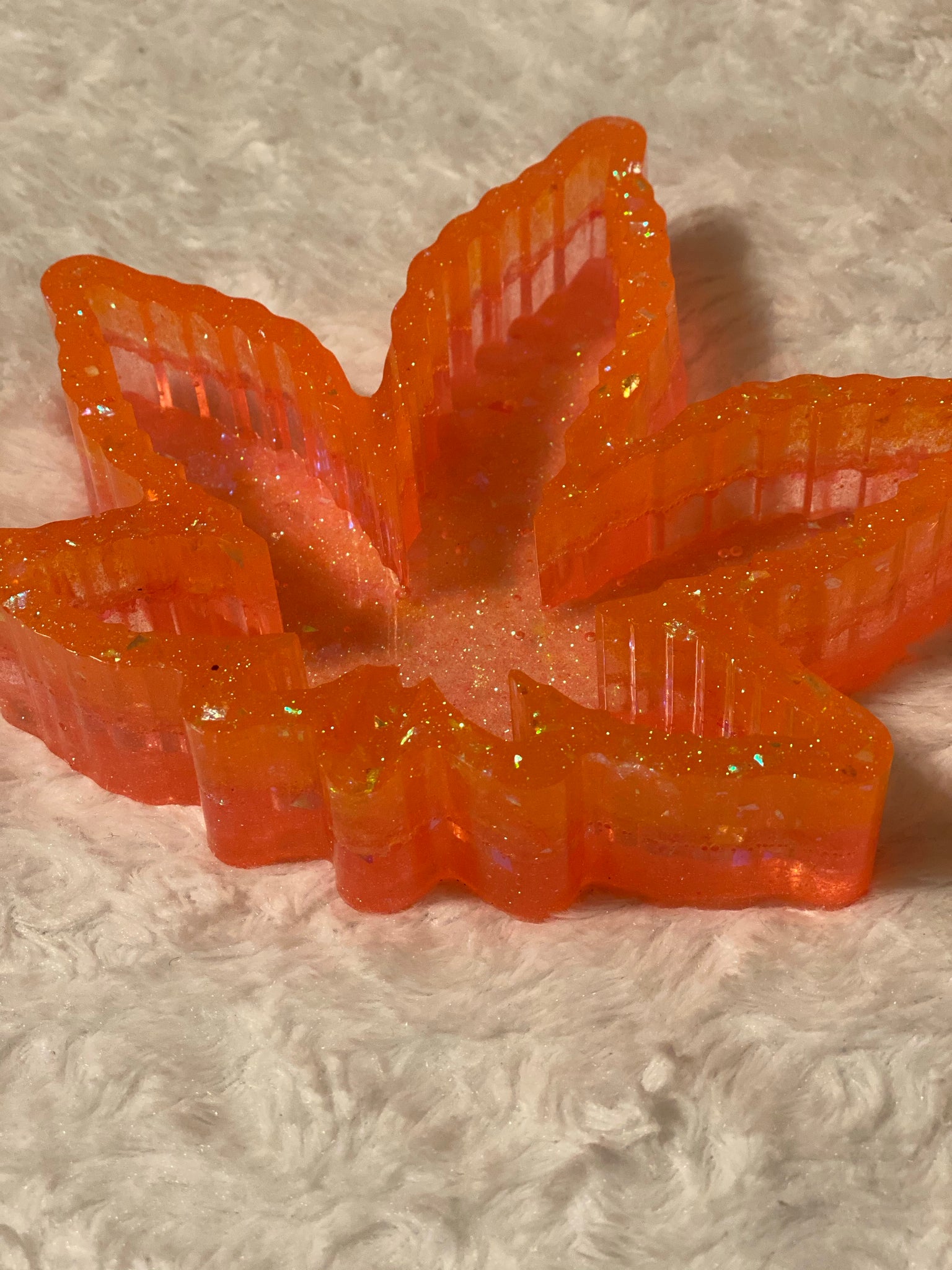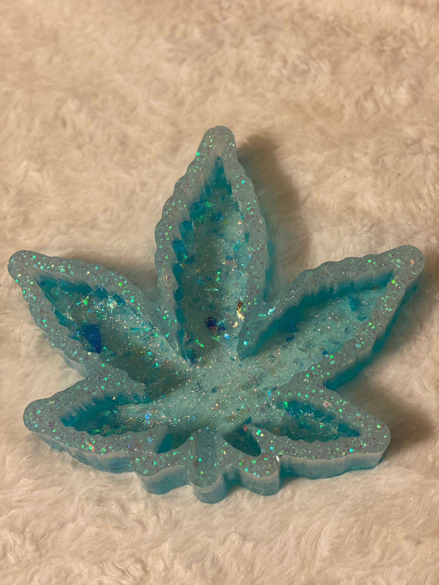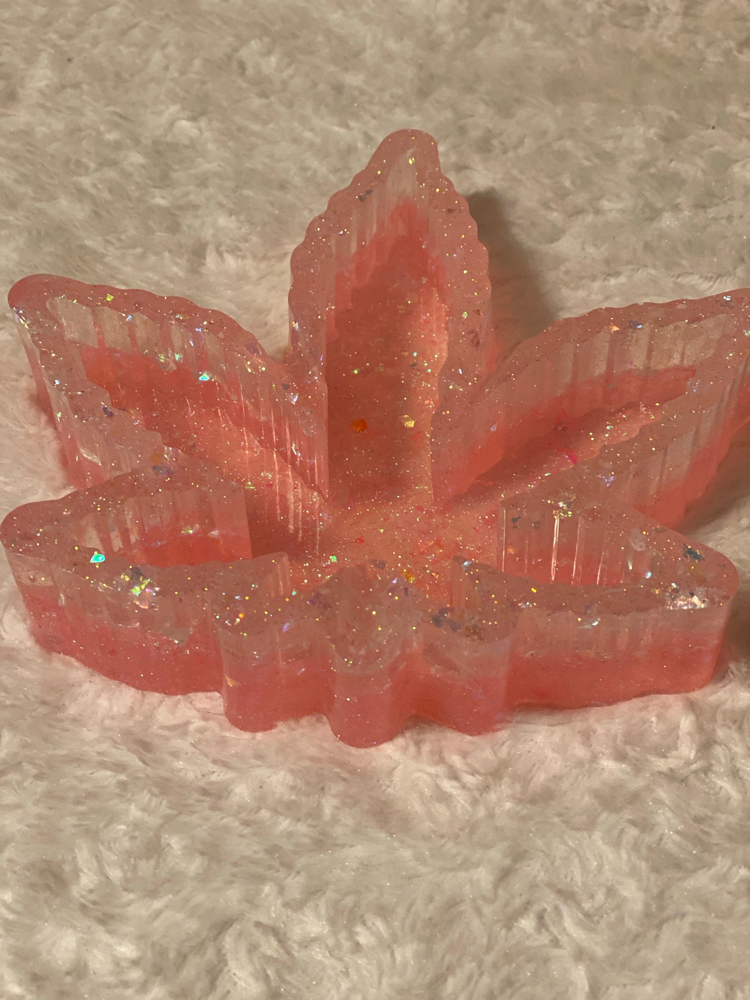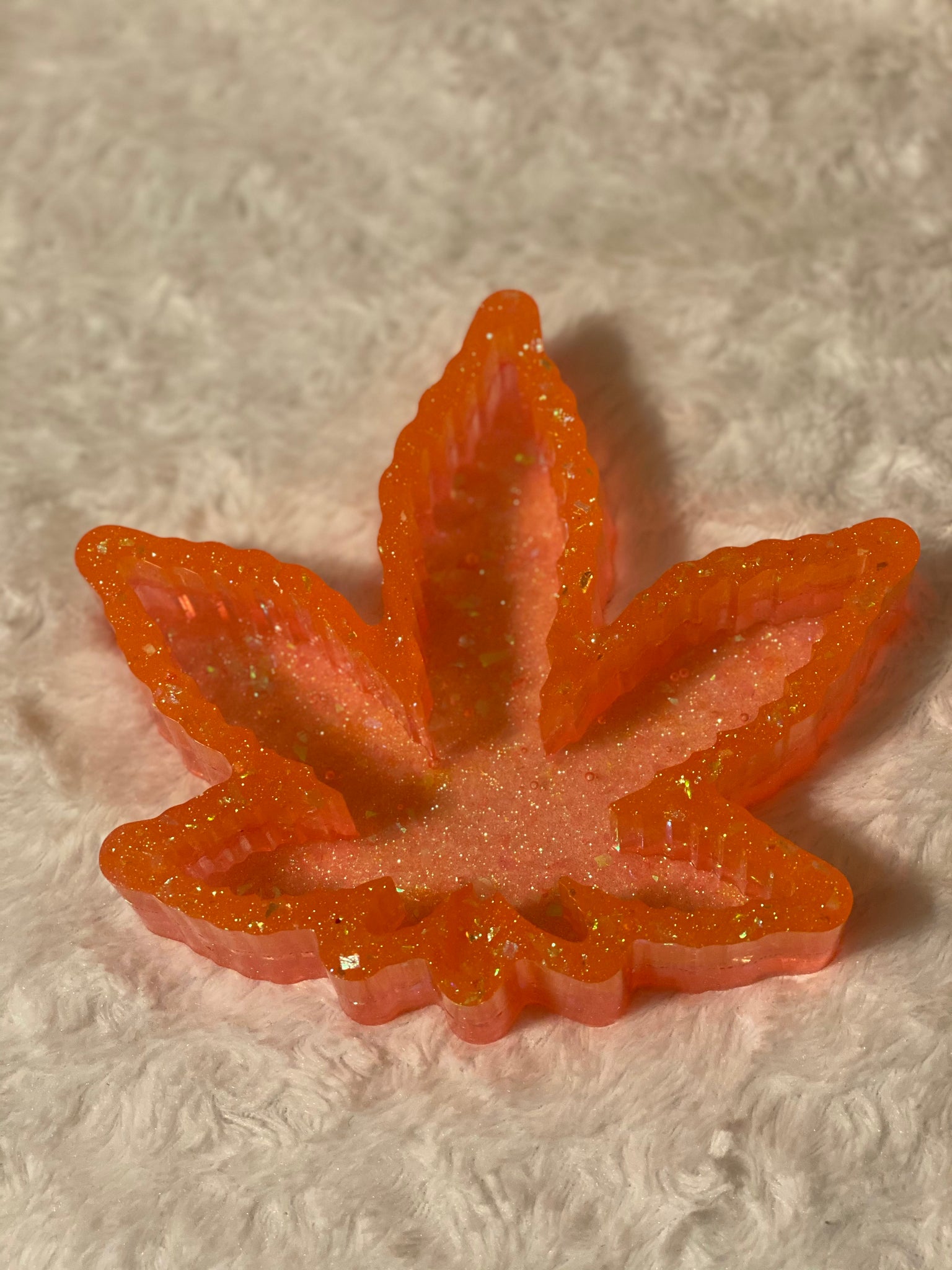 Leaf shaped ash tray beautifully designed with vibrant neon colors. Perfect to enhance your vibe as you indulge.